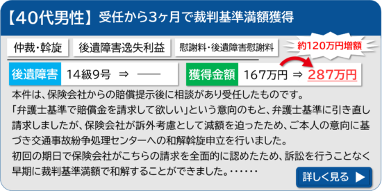 通常、加害者側の任意保険会社が賠償額を提示する場合、独自の算定基準をもとに賠償額を計算しますが、裁判基準で計算した場合の額を大きく下回ることがほとんどです。