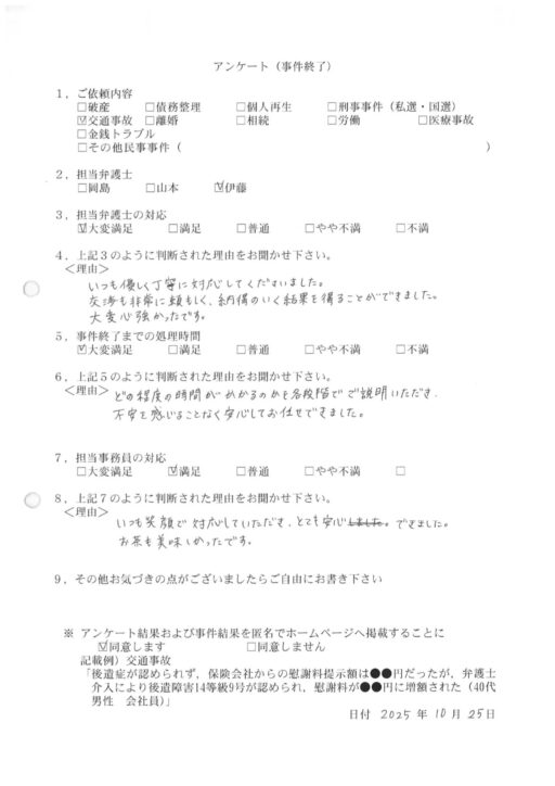 交渉も非常に頼もしく、納得のいく結果を得ることができました。